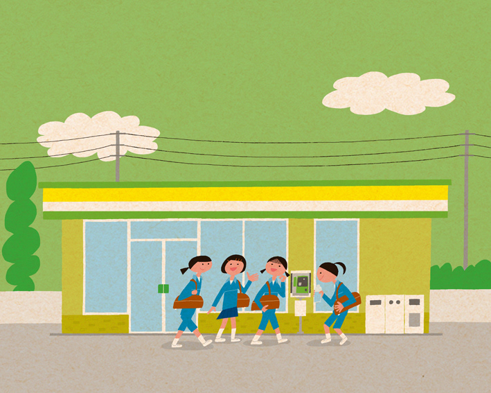 Junior high school girls and a convenience store